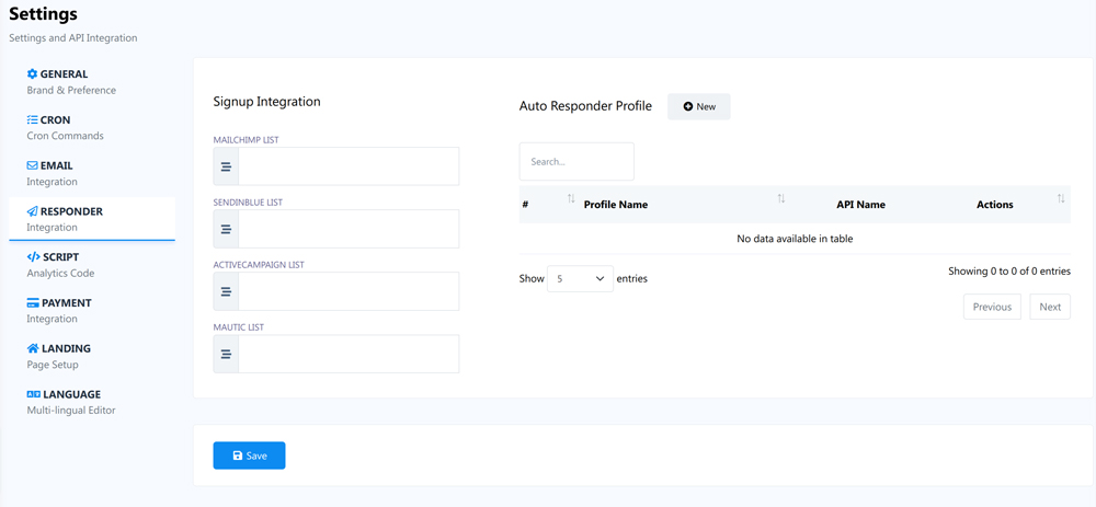 To add your autoresponder profile, simply click on the New button, and your autoresponder list will be automatically synced. From there, you can specify which list you wish to use and then save your changes.